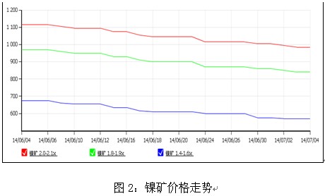 本周,NI0.6-0.8品位价格持续持稳,由于铁矿行情不见好转,镍矿行情暂无优势,中品味镍矿价格依旧小幅下跌,整体下调约30元/镍,NI1.8-1.9港口现货价格也整体下调30元/湿吨,目前市场成交价格为810-870元/湿吨,目前高品味镍矿市场稍显混乱,工厂接货能力不佳,当前缺乏利好因素的支撑,镍矿市场仍旧处于较弱势的状态,预计下周预计镍矿价格难以好转,或将呈现弱势持稳的趋势。