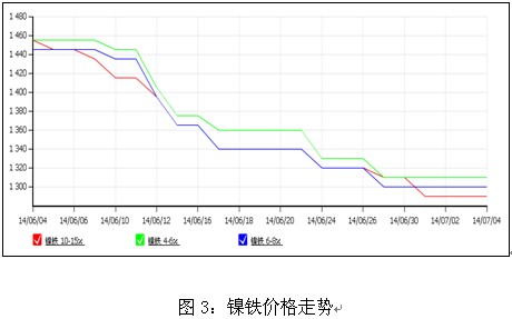 本周镍铁价格整呈现弱势持稳的趋势,高品味镍铁价格小跌20元/镍,部分钢厂公布了7月高镍铁的招标采购价,其中,宝钢7月份高镍铁采购招标价为1300元/镍(到厂含税价),较上轮下调140元/镍。酒钢最新高镍铁招标询盘价为1350元/镍(全承兑)较上轮的采购价也大幅下滑,但是本周伦镍持续走强,给镍铁市场提供了一定的支撑,看涨情绪“复燃”因此,目前市场高镍铁的价格基本仍在1300元/镍左右,部分工厂报价打算上调,目前市场观望情绪浓厚,成交较少,预计下周镍铁价格持稳为主。 |