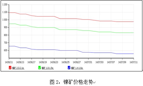 本周中高品味镍铁价格小幅上涨10-20元/镍,主要受本周开始伦镍上涨提振,后半周持稳运行,虽然目前高镍铁的出厂价最高为1320元/镍,但是市场成交价格基本在1300元/镍附近,且次啊有采购较少,然而,低品位的镍铁价格今下跌200元/吨,本周累计下跌300多元/吨,目前低镍铁价格为2850-2900元/吨,主要由于行情疲弱,市场信心不足,悲观情绪浓厚,预计下周镍铁价格仍然弱势运行。上涨可能性不大。 |