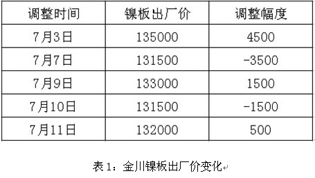 外盘持震荡,金川公司紧密跟随调整镍板出厂价,本周现累计下调3000元/吨。