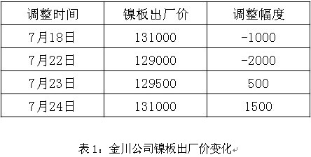 本周伦镍持上涨趋势,周内金川公司三次调整镍板出厂价,调整后与上周价位不变