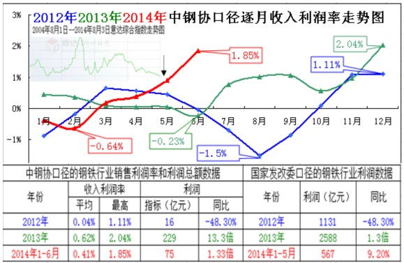 今年以来,虽然钢材价格持续运行在10年来的历史低位,甚至还屡创新低,但在铁矿石、焦煤等,主要原燃料价格下跌幅度远超钢材价格的情况下,我国钢铁行业盈利水平却出现了难得的逐月提高态势,6月份1.85%的收入利润率,更是达到了近三年来的次高水平。数据显示:今年上半年,三级螺纹钢平均下跌了10.01%(351元/吨),热轧板下跌0.76%(27元/吨),但同期63.5%印度粉矿却下跌了27.68%(37.5元/吨),国内矿下跌20.75%(220元/吨),焦煤下跌22.35%(190元/吨)。由于开年以来,占制造成本70%以上原燃料价格的跌幅远远超过成品钢材的2-3倍以上,为企业提供了极为有利的降成本条件。这足以说明,上半年采购成本的大幅度下降,对钢铁企业制造成本的降低和盈利水平的提高,起到了决定性的重要作用(见下图表)。