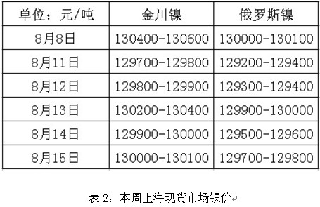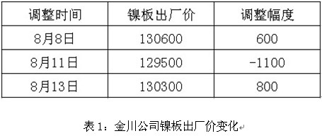 外盘震荡,金川公司整体下调内板出厂价格。与外盘相比,国内现货镍板价格调整幅度仍较小,较上周五累计下跌300-500元/吨。本周镍市整体氛围较好,市场交投氛围也较为活跃,但由于周内外盘受经济数据不景气影响,走势偏弱,市场贸易商购货意愿下降。整体成交状况一般,但能看出,市场购货意愿浓厚。