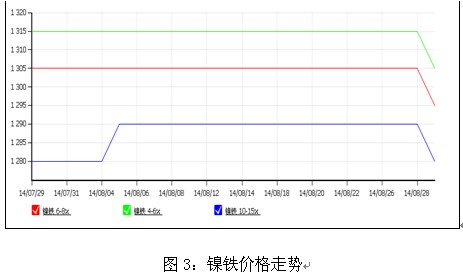 本周前半周镍铁走势持稳,截止周五中、高品味镍铁价格齐小幅下调,下调幅度约10元/镍,目前高镍铁出厂价格下调至1270-1290元/镍(出厂含税),6-8%中镍铁出厂价格下调至1290-1300元/镍(出厂含税)低品位镍铁本周也下调100元/湿吨至2600-2650元/湿吨。近日大型钢厂9月招标价已经出台。太钢高镍铁招标价为1275元/镍(到厂含税)相比上一轮下调5元/镍。宝钢最新高镍铁采购招标价为1270元/镍(到厂含税价),较上轮下调10元/镍。由此可以看出“金九银十”传统旺季或许比以往来的更晚一些,短期无利好因素支撑,镍铁价格上行较难。 |