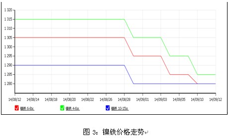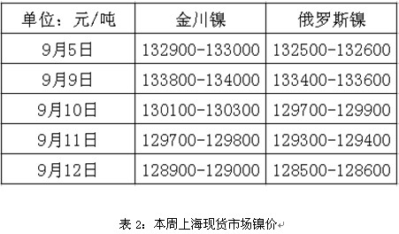 外盘大幅波动,金川公司连日不断调整镍板出厂价格。国内镍板价格较上周五累计下跌4000-4300元/吨。因市场多持买涨不买跌心态,本周市场对伦镍价格信心不稳,除周二市场成交尚好外,连续几日镍市成交都偏淡,整体成交状况不如上周。