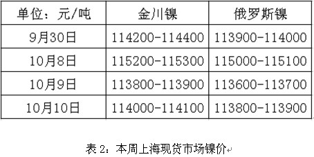 外盘震荡,金川公司两次调整镍板出厂价后,出厂价与上涨没变化。国内镍板价格较上周五累计下跌100-300元/吨。国庆长假后,市场心态较平稳,部分商家持观望态势,货少商家少量补货,整体成交有限。
