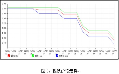 本周国庆小长假结束后的第一周,随着外盘伦镍持续弱势影响,镍铁价格近日不断下调,本周中高品味的镍铁价格累计分别下调约30元/镍,截至周五NI10-15%镍铁主流出厂报价1120-1150元/镍;NI4-6%主流出厂报价1150-1170元/镍;NI6-8%主流出厂报价为1140-1160(元/镍);NI1.5-2.0%报价为2550-2600(元/吨)。目前价格较低,厂家出货意愿不高,下游采购较少,市场成交较清淡,预计短期镍铁价格或继续弱势小幅下跌为主。 |