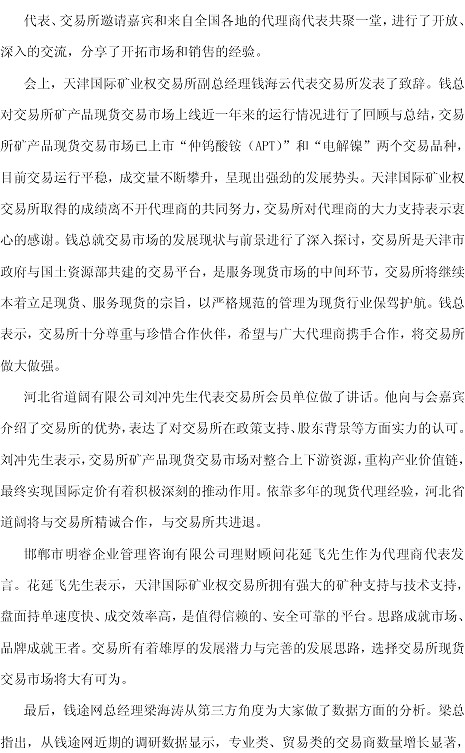 天津国际矿业权交易所2014全国代理商大会顺利召开