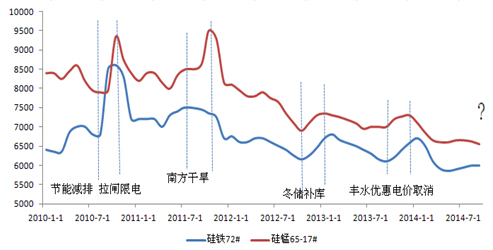 同钢材、铁矿石等品种不同,铁合金行业,尤其是硅锰和硅铁的采购策略,钢厂方面依然还保持着以往冬储的传统,其原因一方面由于北方主产区冬季供暖以煤为主的物流政策难以撼动,另一方面则是近几年形成的铁合金四季度上涨规律,其实这一规律形成的本质主要是由于南方进入枯水期大面积停产所致,而第三方面则由于钢厂抢占资源形成的集中采购乱象。无论是哪一种因素形成了钢厂铁合金冬储这一规律,似乎2014的冬天这一规律没有丝毫要被打破的前兆。