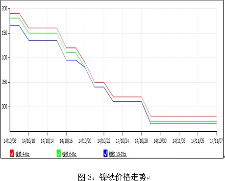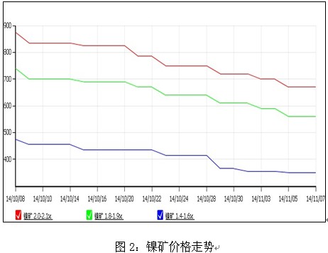 前期跌幅较深,本周现货市场镍生铁价格维持在平稳状态,10-15%品位镍生铁维持在950-980元/镍,6-8%品位镍生铁维持在960-980元/镍,4-6%品位镍生铁则维持在970-990元/镍。另,据了解青山集团近日高镍铁采购价格约为990元/镍(到厂含税);广州联众最新招标价为1000元/镍(到厂含税、现款现付);张家港浦项高镍铁招标价为965元/镍(到厂含税、现款现付) |