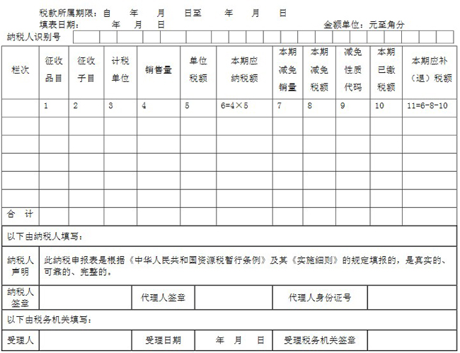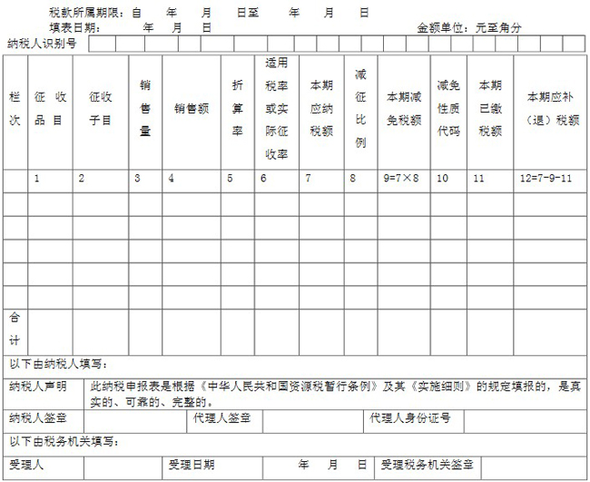 1.本表适用于资源税纳税人填报(国家税务总局另有规定者除外)。
