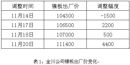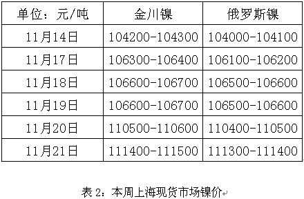 外盘持上涨走势,金川公司周内三调出厂价,较上周累计上调7100元/吨。国内镍板价格较上周五累计上涨7200-7300元/吨。外盘下方支撑线上扬,走势偏强,增强市场预期,上半周贸易商购货积极。周三伦镍大幅上涨,贸易商因忧虑涨势稳定性及持续性问题,买货有所忧虑,但今日交投状况继续好转。本周整体交投氛围活跃,成交较之前大有改观。