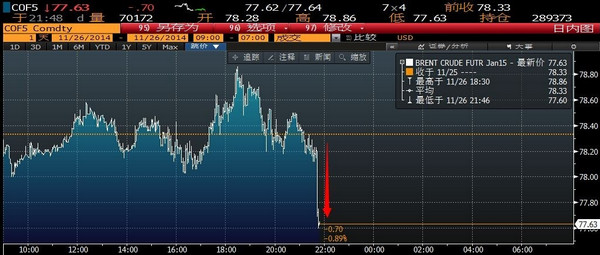 欧那密上述表态后国际油价进一步下挫,当日布兰特原油期货收跌0.58美元,报每桶77.75美元,美国原油期货收跌0.40美元,报每桶73.69美元,盘后交易中一度触及73.30美元。
