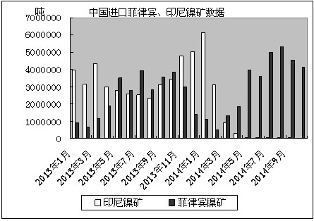 菲律宾进入雨季,矿山镍矿出货量陆续减少,下游镍生铁工厂维持正常生产,是造成港口镍矿库存出现趋势性减少的主要推动因素。10月份,中国进口自菲律宾的镍矿尚未出现大幅度减少。我们预计,受雨季影响,11月份进口自菲律宾的镍矿将出现大幅减少。与之相对应的是,国内主要港口镍矿库存也将出现更大幅度的减少。