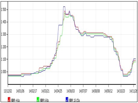 11月份,国内镍生铁现货价格阶梯式上涨,其中,4-6%品位镍生铁由月初的970-990元/镍涨至1010-1030元/镍,后涨至1080-1100元/镍;6-8%品位镍生铁由月初的960-980元/镍涨至1000-1020元/镍,后涨至1070-1090元/镍;10-15%品位镍生铁则由月初的950-980元/镍涨至980-1040元/镍,后涨至1090-1120元/镍。