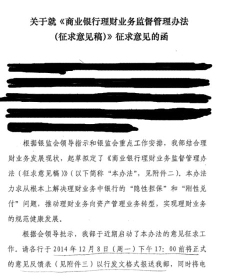 关于就《商业银行理财业务监管管理办法(征求意见稿)》征求意见的函