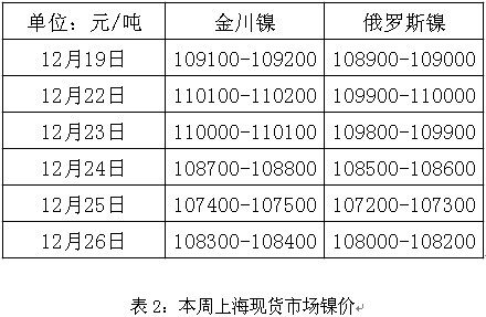 即西方圣诞节后,下周即将迎来元旦节日,市场节前避市观望或将减缓市场镍价波动速度。