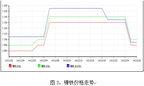 十二月伦镍大幅下滑,主要原因在于欧美市场投资人,鉴于:原油价格偏低,且未见反弹趋势,美联储或提前加息;俄罗斯经济存在一定风险,世界经济除美国外,均出现价格调低的现象,因此调低大宗商品价格。市场逢年底调整仓位,抛售一篮子大宗商品,压低基本金属价格,伦镍因今年录得较大涨幅,因而受到最强冲击。新年将至,且当前大宗商品价格已有较大幅度跌幅,预计这种一篮子抛售行为将趋近结束。对伦镍价格的冲击将减缓。