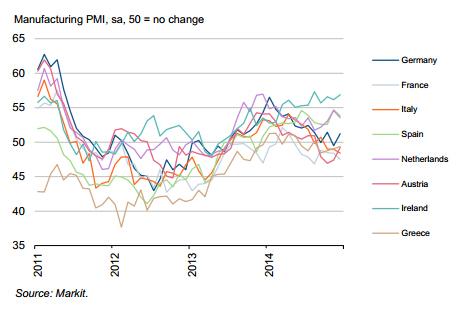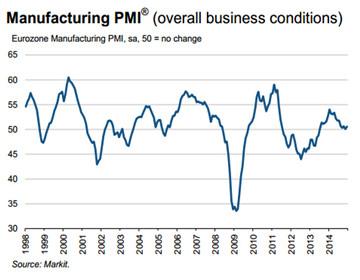 数据编制机构Markit周五(1月2日)公布的调查显示,欧元区制造业活动在12月以低迷不振的状态结束了2014年,产出、新订单和就业分项指数均增长乏力,这加大了要求欧洲央行(ECB)采取行动支撑经济的压力。