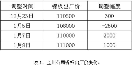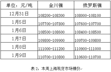本周外盘上涨,波动幅度较小,金川公司三次调整镍板出厂价,元旦前后,无调价情况,较上周累计上调500元/吨。国内镍板价格较上周五累计上涨2500-2600元/吨。外盘走势缓慢向好,国内现货市场,贸易商购货积极性高涨,本周整体交易活跃。