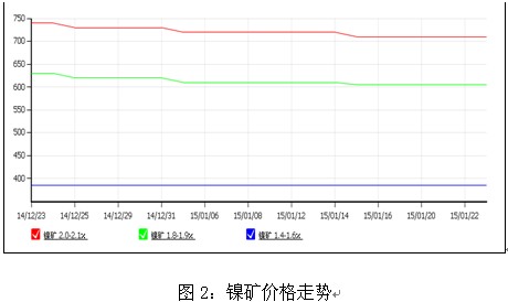 本周镍矿价格依然持稳运行以稳为主,由于伦镍走势仍不乐观,市场缺乏有利因素支撑,镍矿欲涨乏力,但是报价坚挺,目前NI:1.6-1.7%的港口镍矿主流成交价格为440-520元/湿吨,NI:1.7-1.8%的镍主流成交价格为520-570元/湿吨,NI:1.9-2.0%的镍矿价格为630-690元/湿吨,据了解,天津港口基本无成交,继续封盘观望情绪浓厚,连云港口成交尚可,整体环境不佳的状况下,预计下周镍矿价格波动不大,以稳为主。