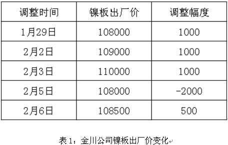 本周外盘大致呈先涨后跌的震荡走势,金川公司逢外盘波动较大时,紧密跟随调价,较上周五累计上调500元/吨,国内镍板价格,较上周五上涨700-900元/吨。本周现货市场表现为,伦镍上涨时贸易商贸易商担心高位回落,购买积极性较弱,伦镍下跌时,担心进一步下滑,积极性也不够高,待伦镍下跌趋势明显止步后,交投有一定改善,因此本周整体交投情况并不乐观。