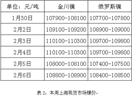 本周外盘伦镍先扬后抑,镍铁价格周二受伦镍上涨影响亦小幅上调5-10元/镍不等,随后持稳运行,截至周五,高品位镍铁10-15%的市场主流价格为1060-1080元/镍,中品味6-8%品味的镍铁价格为1050-1060元/镍,而且,据市场了解,本周太钢出台了2月份高镍铁的招标价为1090元/镍(到厂含税价)较上轮小幅下调10元/镍,临近春节,市场部分贸易商操作较少,市场成交依旧清淡,毫无起色,预计下周镍铁价格仍持稳为主。 |