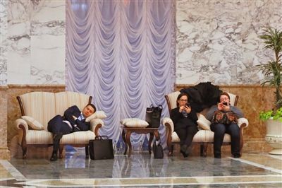 谈太久,困! 乌克兰问题四方会谈持续近17个小时。蹲守的记者、官员都熬不住了,不少人倒在沙发或趴在工作台上睡着了。