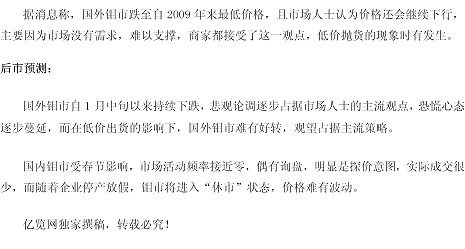 今日观察2-11:国外钼市仍下行 国内钼市渐…
