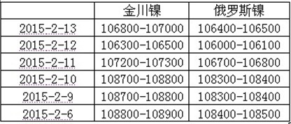 本周金川集团调价次数较少,2月11日下调出厂价1500元/吨,电解镍(大板)下调至107000元/吨,桶装小块下调至108200元/吨(上海)。