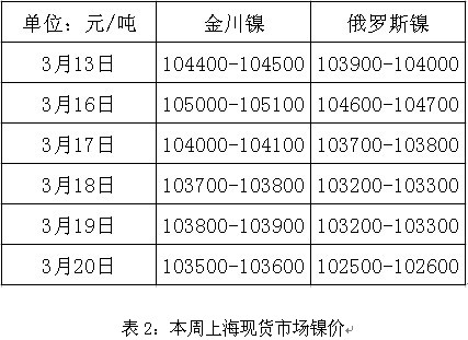 本周影响伦镍走势因素主要有:利空方面:上周国内港口镍矿库存首次出现增加;美国制造业数据弱于预期,中国节后需求复苏缓慢,市场预期需求收到影响;市场忧虑美联储加息问题;LME镍库存反减为大增。利好方面,中国信贷数据意外好于预期;美联储会议释放更为鸽派的信号;今日数据显示,本周国内沿海港口镍矿减少幅度较大。多空因素相互影响,本周伦镍下跌后震荡,今日下午反弹。