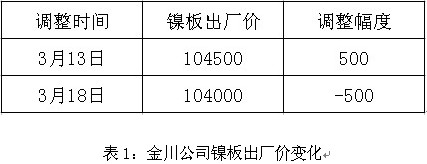 本周外盘震荡偏弱,金川公司不愿过度下调,较上周下调500元/吨。国内镍板价格较上周五下跌900-1400元/吨。外盘走弱,贸易商购货积极性受影响,但部分贸易商欲求低位抄底,增加一定交易量。之后,一些持货商将镍板价格较低,不愿亏本出售,且期盼镍价上涨,有惜售情节,本周整体成交较为清淡。