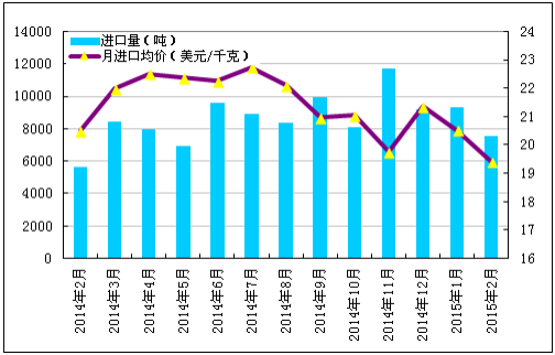 图1 2014年2月-2015年2月多晶硅进口量及进口均价示意图数据来源:海关