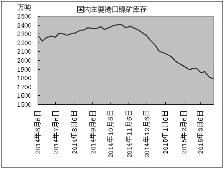 3月份国内港口镍矿库存继续减少。统计的主要港口数据显示,截至3月27日镍矿库存累计为1789万吨,2月底为1906万吨。其中,菲律宾镍矿为1351万吨,2月底为1397万吨;印尼镍矿为438万吨,2月底为509万吨。其中,连云港镍矿为573万吨,天津港为350万吨,铁山港为210万吨,岚山港为160万吨。