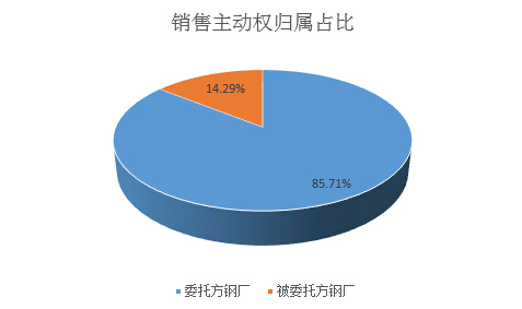 图4所示,在整个“贴牌”资源的销售主动权归属中,85.71%的资源销售主动权归属于品牌提供钢厂,仅有14.29%的资源销售主动权归属于贴牌钢厂。