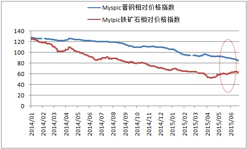图三:MySpic普钢价格指数与MyIpic进口矿价格指数走势