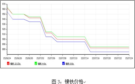 本周伦镍震荡下跌,国内镍铁价格承压运行,主流出厂价较坚挺,但是实际成交价小幅下调,据了解,下游钢厂目前都是处于倒挂的现象,出一吨货物基本亏损200左右,因此钢厂压低采购原料的价格,1.5-2.0%的低品位的镍铁价格本周下调50元/吨,目前市场整体状况很低迷,成交清淡。预计下周伦镍若持续下跌的话,镍铁价格下调的概率较大。
