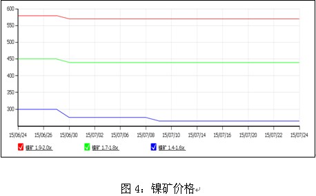 本周镍矿价格基本弱势持稳,目前行情持续低迷,市场气氛特别冷清,矿商基本处于休息的状态,转行的也越来越多,少量的成交基本也都是处于亏损状态,目前市场上NI:1.8%品味的镍矿价格基本在470-480元/湿吨,但是若下游镍铁价格持续下跌,镍矿价格预计很难支撑的住,下跌或是必然,料下周镍矿价格小幅下调的概率较大。