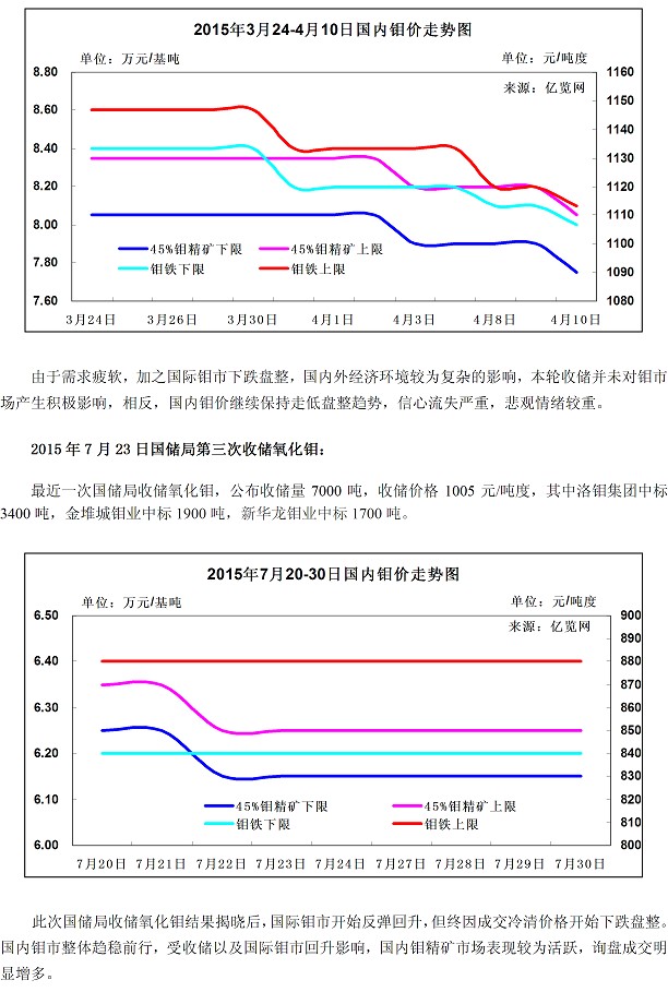 今日观察7-31:国际钼市再走低 国内逢招必…