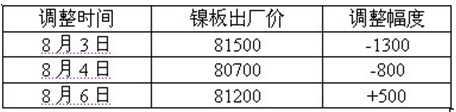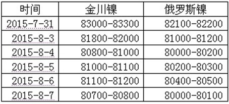 表1:本周金川镍板出厂价