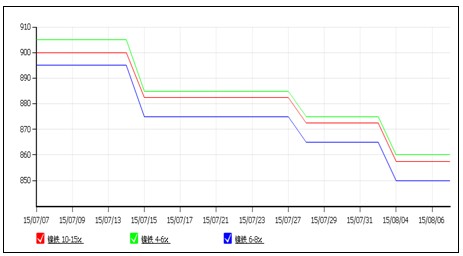 本周外盘伦镍价格持续走低,国内镍铁价格受此拖累亦下调报价,价格下调约15元/镍,由图可以看出,镍铁价格的重心在不断的下移,目前NI:10-15%高品位的镍铁主流出厂价为850-865元/镍,NI:6-8%的中品味的镍铁主流出厂价为845-855元/镍,持续低迷的格局不改,加之下游钢厂采购意愿底下,使得镍铁价格失去有利的支撑,预计下周镍铁价格弱势持稳为主,但不排除有小幅下调的可能。