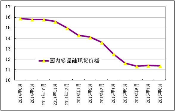 图1 2014年8月-2015年8月国内多晶硅现货报价单位:万元/吨