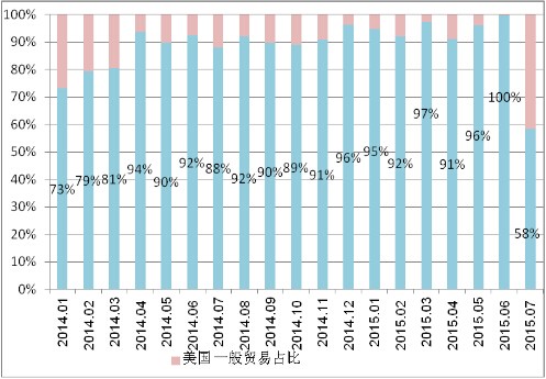 图5 自美国按加工贸易进口占比