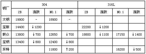 8月份不锈钢价格走势