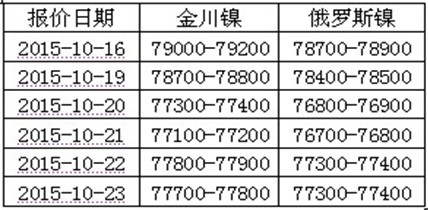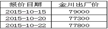 表1:金川镍板出厂价