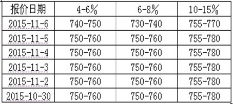 本周现货市场镍铁价格多数时间持稳,后半周价格下调,4-6%品位镍铁由750-760元/镍下调至740-750元/镍,6-8%品位镍铁由750-760元/镍下调至730-740元/镍,10-15%品位镍铁由755-780元/镍下调至755-770元/镍。11月5日太钢集团公开采购高镍铁,执行价格为740元/镍(现款,到厂含税价)。