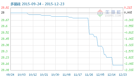 12月23日多晶硅商品指数为28.15,与昨日持平,创下周期内的历史新低,较2011年09月08日最高点100.00点下降了71.85%。(注:周期指2011-09-01至今)