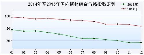 中钢协表示,钢材价格的持续下跌是导致企业生产经营困难的直接原因,下面是中钢协公布2014年和2015年钢材综合价格指数走势,不难看出,钢材价格近两年来持续走低。