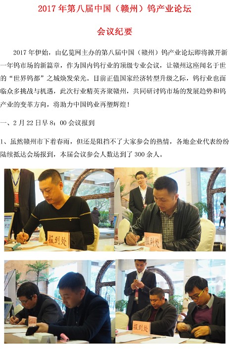 2017年第八届赣州钨业论坛会议纪要