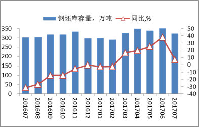 本月末,重点钢铁企业钢坯库存量323.34万吨,比去年同期增加20.79万吨,上升6.87%,比年初增加60.71万吨,上升23.11%,比上月减少48.84万吨,下降13.32%。